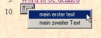 "Display on a pop-up menu" sorgt dann für ein kleines Auswahlfenster: