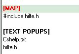 aufrufen. Im Karteireiter "Map" wird die Header Datei eingetragen. Im Reiter "Text Pop-ups" muss sowohl die Cshelp.txt als auch (nochmals!) die Header Datei eingetragen werden.
