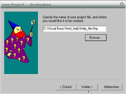 In diesem Fenster wird nach dem Ort und dem Namen der zu erstellenden Hilfedatei gefragt. Am besten man legt dazu eine separate Direkory an.