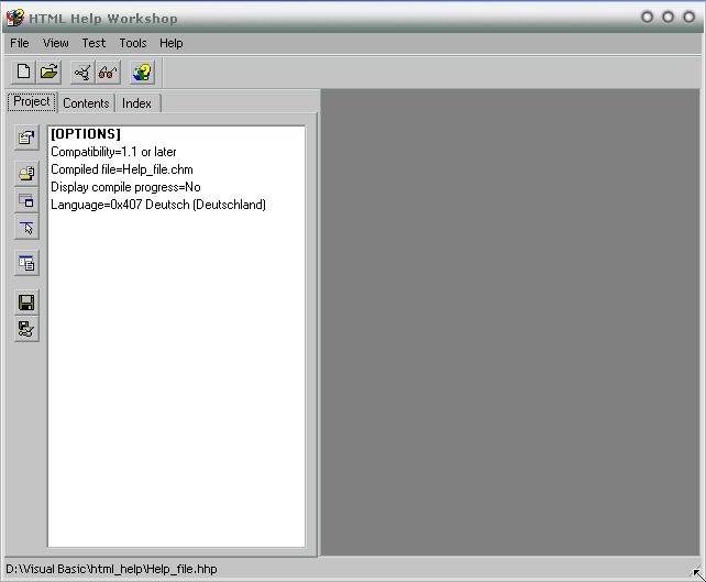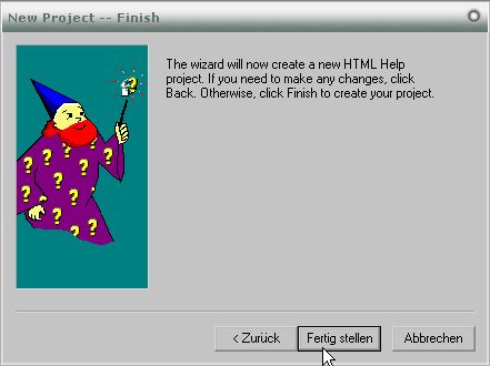 Und noch ein Info-Fenster damit wohl der Wizzard seinen (Un-) Sinn erfüllt. Nach Betätigung der Schaltfläche 'Fertig stellen' erscheint die Programmoberfläche des HTML Help Workshop.