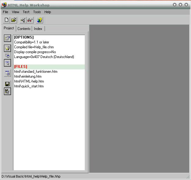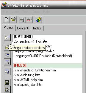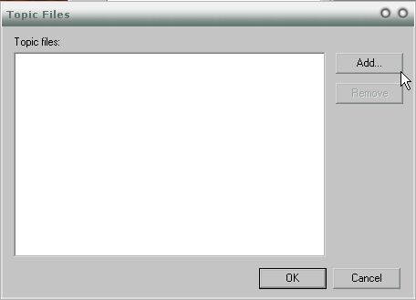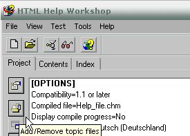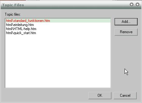 In diesem Beispiel habe ich die ersten html-Seiten des Hilfe Projekt eingebunden, entweder zu Beginn der Projekterstellung oder aber über den Button "Add/Remove Topic files".