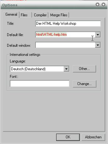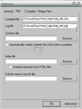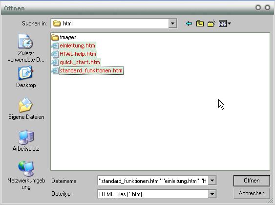 In dem nun erscheinenden Fenster trägt man die html-files ein:
