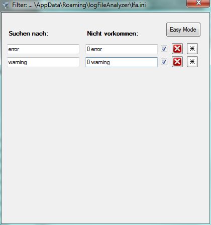 Das Programm logFileAnalyzer besteht aus 2 Fenstern: