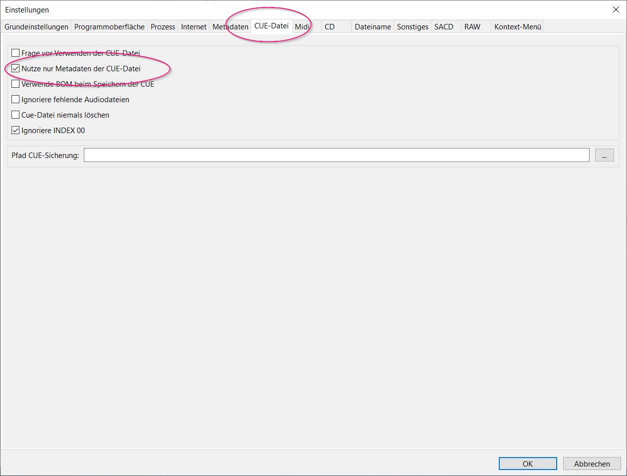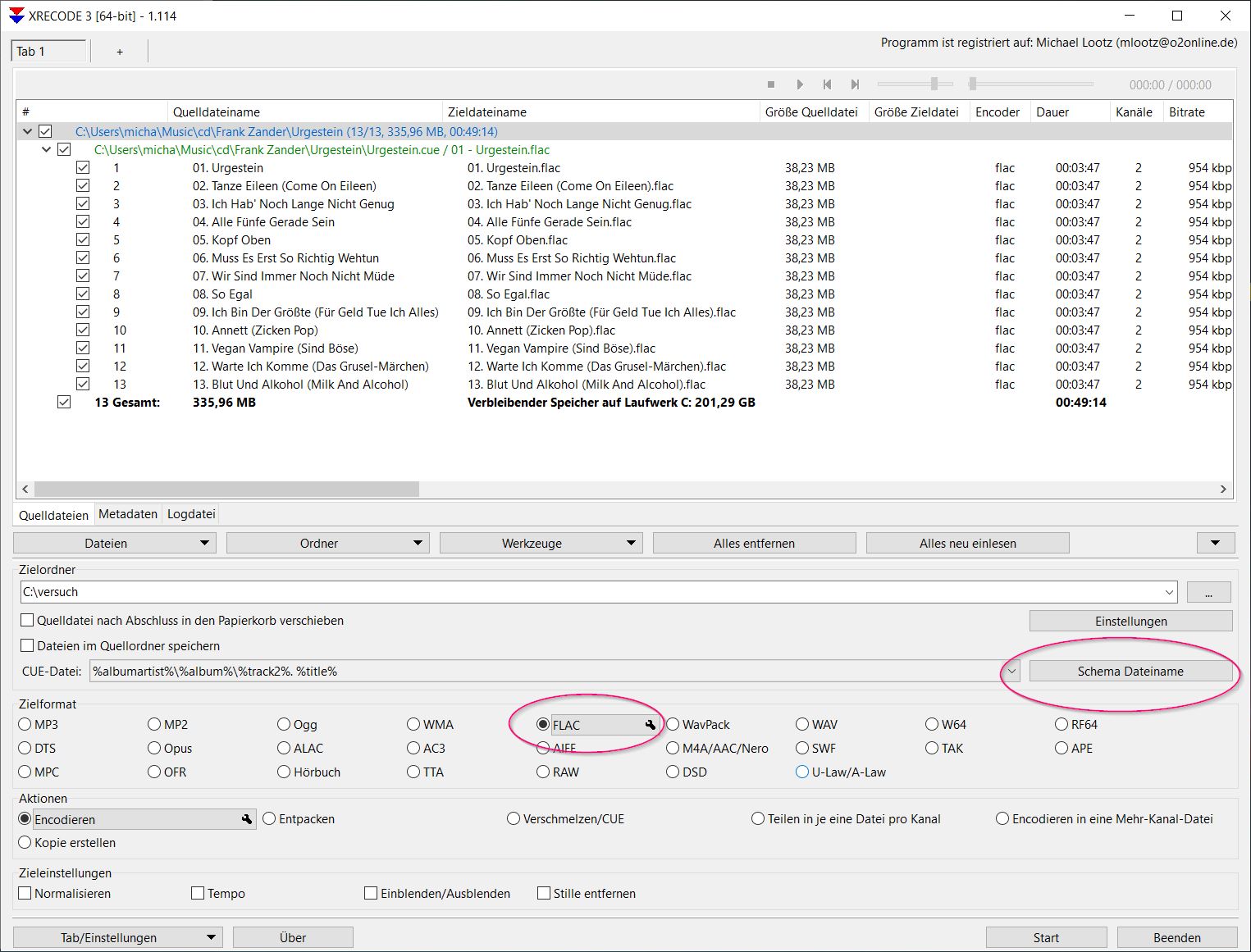 - mit xrecode neue flac-Dateien über das Cue-Sheet erzeugen: