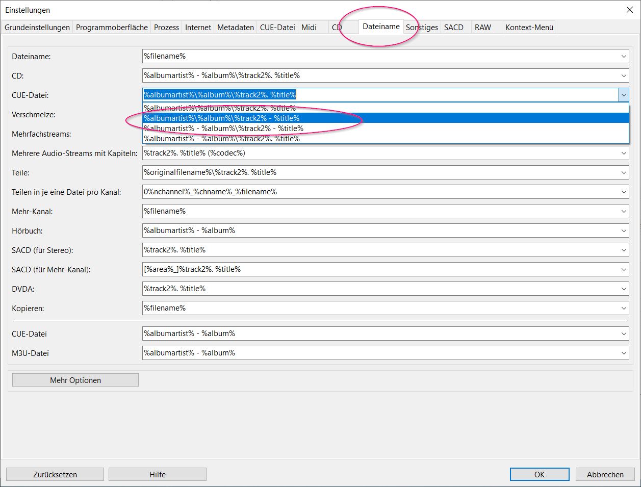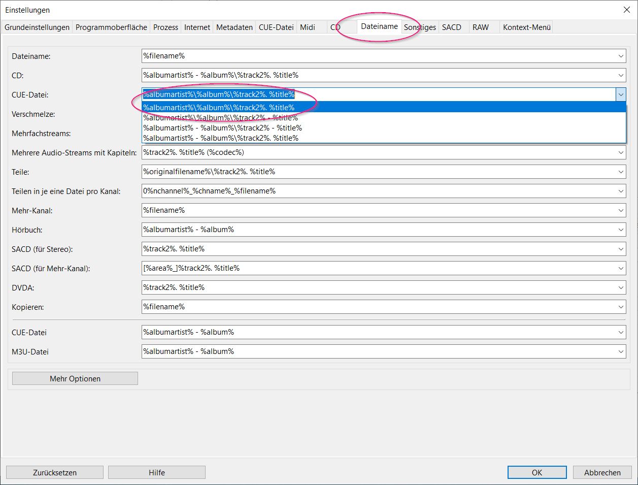 - Mit Burrrn Cue-Sheet formatieren für flac