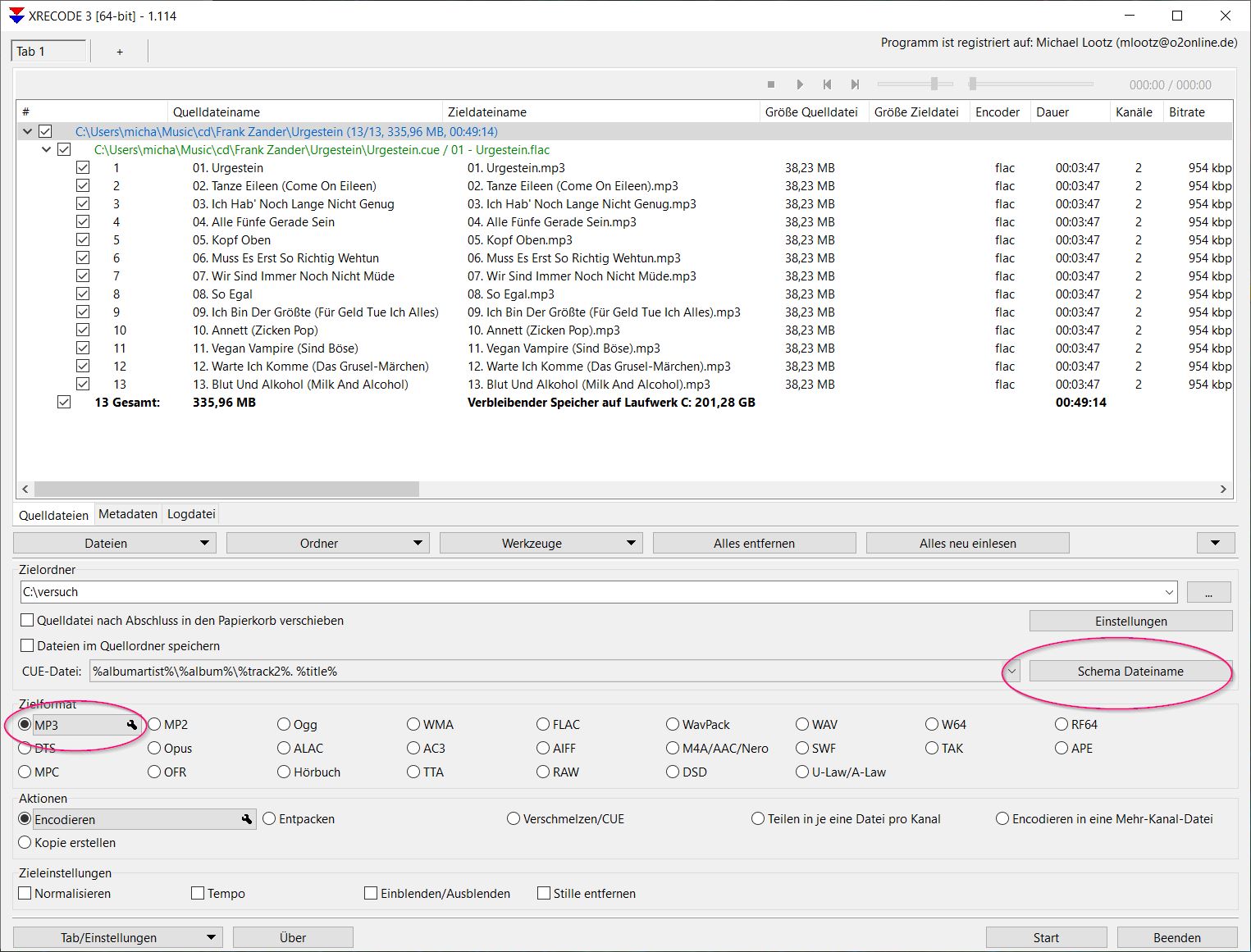 - Sonderzeichen von xrecode erzeugten flac-filenamen werden u.U. geändert: