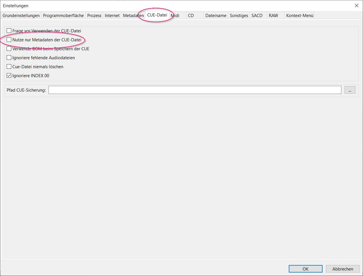 - Cue-Sheet unter: Aktionen -> Erzeuge Cue Sheet -> Mehrere WAV Dateien